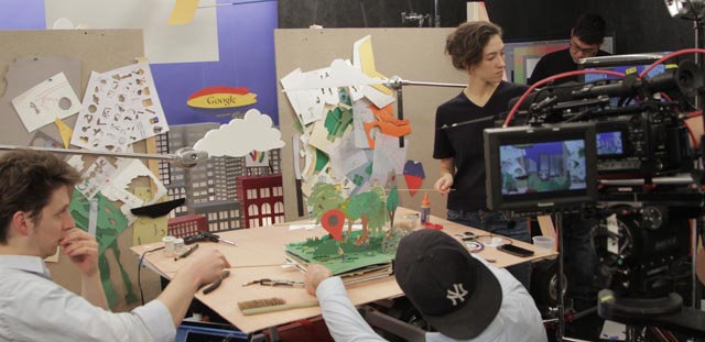 Just wrapped on a new Google spot. It’s the follow-up to the recent “Developer Stories” spot, used a lot of paper, and we’re very excited. You can see me “directing” with my hand in my mouth, on the left. More coming soon.
